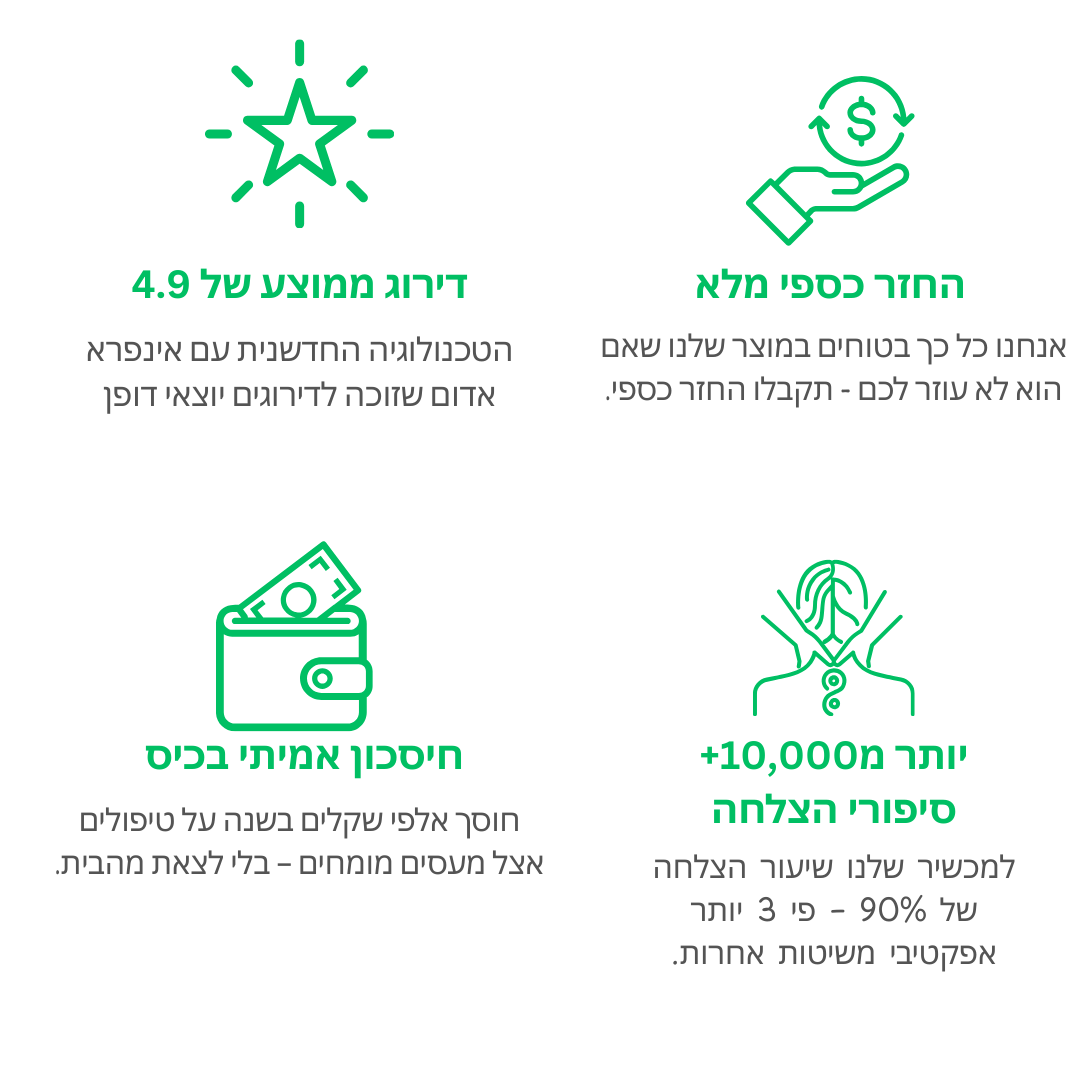 אנחנו מציעים אחריות החזר כספי למשך 30 יום. אם אינך מרוצה לחלוטין, תוכל להחזיר את מכשיר ה-ZenTouch במצבו המקורי ולקבל החזר מלא.