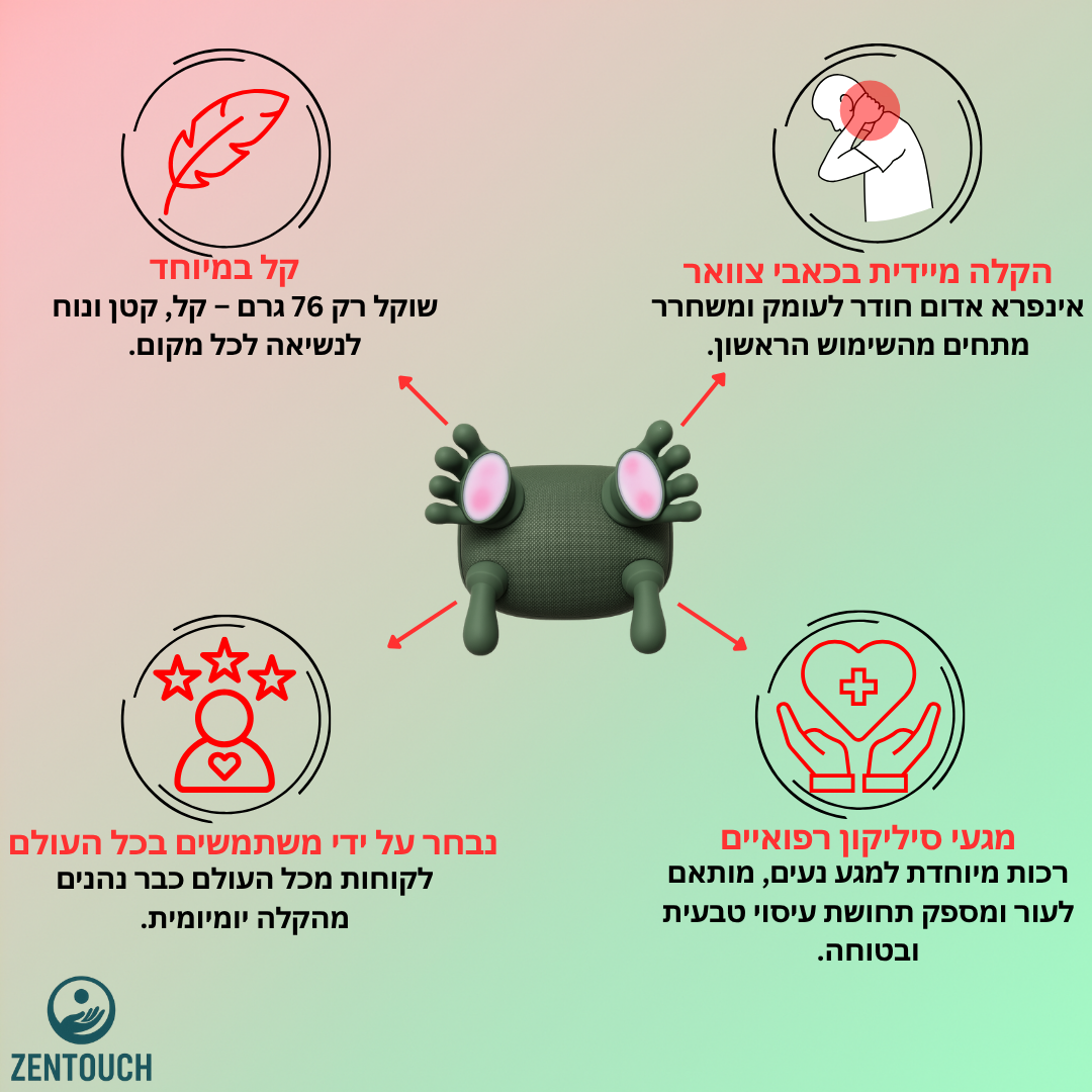 אלפי אנשים כבר בחרו בטכנולוגיית העיסוי של ZenTouch ומרגישים הקלה אמיתית תוך דקות.