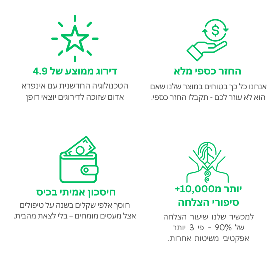 "אני לא מאמינה כמה מהר הכאבים שלי נעלמו. ה-מכשיר נכנס לתיק שלי, ככה שאני משתמשת בו גם בעבודה וגם בבית – ממש מציל חיים!"